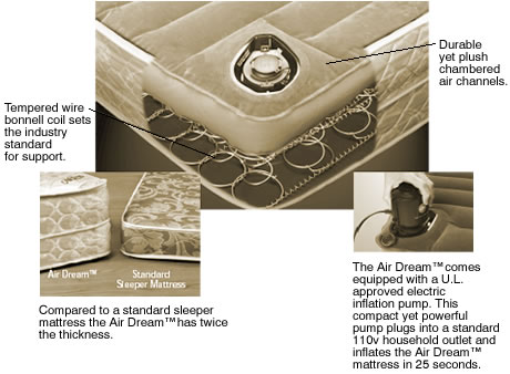 Rugged constructed air chamber provides flat sleeping surface for minimal side to side motion